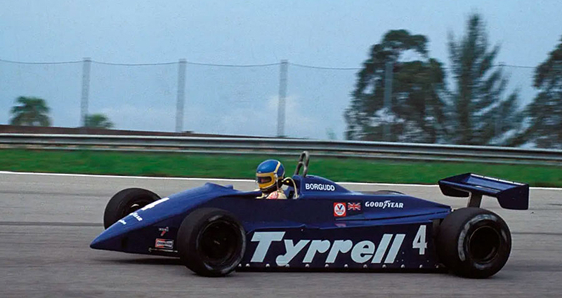 Pro rok 1982 ho oslovil Ken Tyrrell, protože v právě skončené sezóně byl Borgudd rovnocenným soupeřem Alboreta. Jenže letopočet se pohnul a vše bylo jinak. Nelze říci, že by si Slim vedl vysloveně špatně, dokončil všechny tři úvodní závody, ale na Itala najednou masivně ztrácel. Navíc se mu nepodařilo dodat britské stáji žádné „věno“ (jestli čekal nějaké finance od přátel z hudebního světa, ABBA v roce 1982 končila svou činnost), a proto ho Tyrrell po závodě v Long Beach nahradil Brianem Hentonem (více zde), s nímž ale také žádnou díru do světa neudělal.